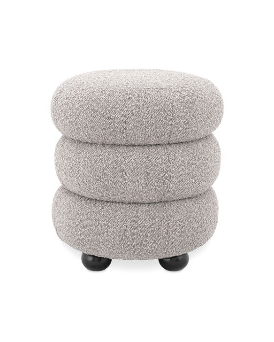 En stilren och modern pall i mjuka former från Eichholtz. Tulum består av tre lager i grått strukturerat bouclé tyg och är en pall som passar perfekt in i vardagsrummet eller i sovrummet.