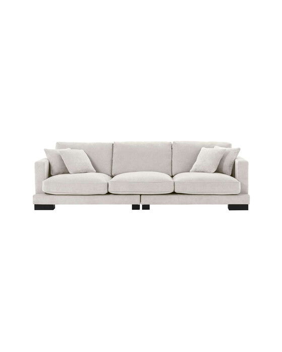 Tuscany är en stilfull och luxuös soffa från varumärket Eichholtz. Den är inte bara mjuk och bekväm utan utstrålar också en skönhet och elegans som kommer att sätta prägel i ditt vardagsrum. Med hög kvalitet och skön sittkomfort passar den in i de flesta hem och tillfällen, och den generösa sittytan tillsammans med de mjuka sittdynorna och kuddarna skapar en mysig atmosfär som bjuder in till umgänge på ett avslappnat sätt. Soffan finns också i färger som vit och grå.