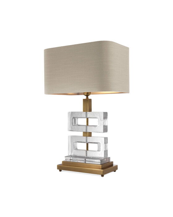 Umbria är en unik bordslampa från EIchholtz bestående av lampfot i vintage mässing med två handgjorda ramar av klarglas som adderar glamour och elegans till din interiör. Notera att denna lampa säljs exklusive skärm. Denna outlet-vara finns i begränsad kvantitet.