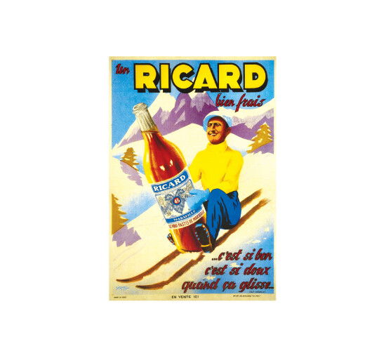 Un Ricard bien frais är en livfull och nostalgisk väggdekoration som förmedlar glädjen i vinteräventyr med en humoristisk touch. En stor flaska Ricard, den ikoniska pastisen från Marseille, tar plats i centrum tillsammans med en leende skidåkare som glider nerför en bergssluttning. De klara färgerna och den lekfulla designen skapar en känsla av retroglamour och hyllar den franska traditionen av njutning och livsglädje. Perfekt för den som vill lägga till lite färg och humor i sitt hem.