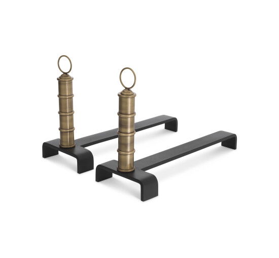 Med Vauxbons andiron får du ett elegant set eldhundar i 2 delar som passar perfekt i både moderna och traditionella eldstäder. Dessa eldhundar är tillverkade av järn med svart finish på de bakre skenorna och en vacker vintage mässingfinish på de dekorativa bambu-liknande upprättstående skyddsstängerna. Perfekta för att skapa bättre drag och undvika att elda direkt mot bakväggen.