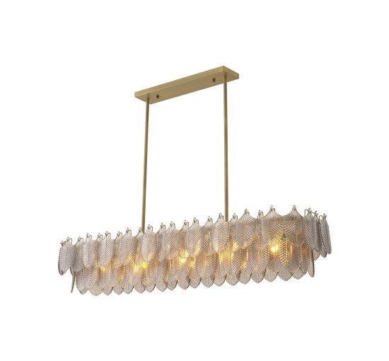 Uppdatera din befintliga interiör med den rektangulära Verbier Chandelier, en riktig höjdpunkt som kan integreras i vilken modern eller klassisk inredningsstil som helst. Denna pendellampa med ljus borstad mässing och rökglasdekorationer uppfyller inte bara sitt syfte att lysa upp rummet, utan är också ett konstverk. Placera den ovanför ett matbord eller köksö för en riktigt sofistikerad finish. Höjden kan justeras efter önskemål med de medföljande rören.
