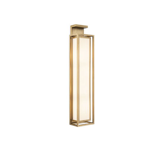 Med sitt eleganta, moderna och orientaliskt inspirerade utseende ger Versus vägglampa dig möjlighet att uppnå ett elegant och koordinerat utseende i din heminredning. Den benvita skärmen kombineras med en ram i antik mässingsfinish och passar särskilt bra i minimalistiska och industriella miljöer.