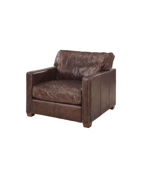 Den skinnklädda fåtöljen Viscount från Artwood är en klassisk design med dekorativa nitar. Lädret vintage cigar är ett täckfärgat fullnarvsläder som bevarar den äkta känslan av skinnet. Läder är en naturlig produkt som utvecklar karaktär över tiden med märken och färgskiftningar.