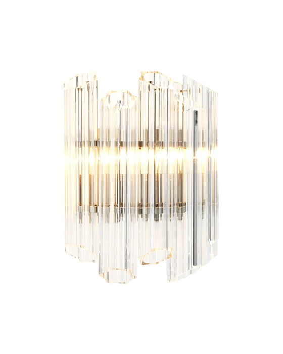 The Vittoria wall lamp channels glamour and grandeur into any home décor. With its dazzling design featuring ribbed and bevelled clear glass tubes, this lustrous sconce creates a stunning glow in any interior it adorns.