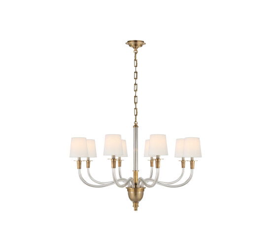 Thomas O’Briens Vivian skapar ett elegant uttryck genom att framhäva den harmoniska blandningen av kristall och metall med runda former. De böljande linjerna och eleganta formerna kommer att ge en lättsam estetik till vilket rum som helst.