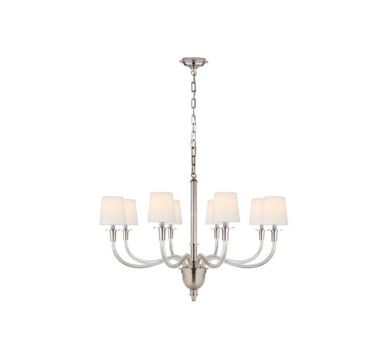 Thomas O’Briens Vivian skapar ett elegant uttryck genom att framhäva den harmoniska blandningen av kristall och metall med runda former. De böljande linjerna och eleganta formerna kommer att ge en lättsam estetik till vilket rum som helst.