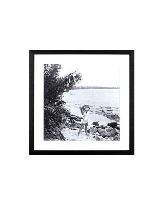 Den vackra Vogue-tavlan ’Vogue 1952 I’ fångar en mild sommardag på stranden med svartvita fotografier som ger rummet djup och elegans. Perfekt för att skapa en stilfull atmosfär i vilket rum som helst.