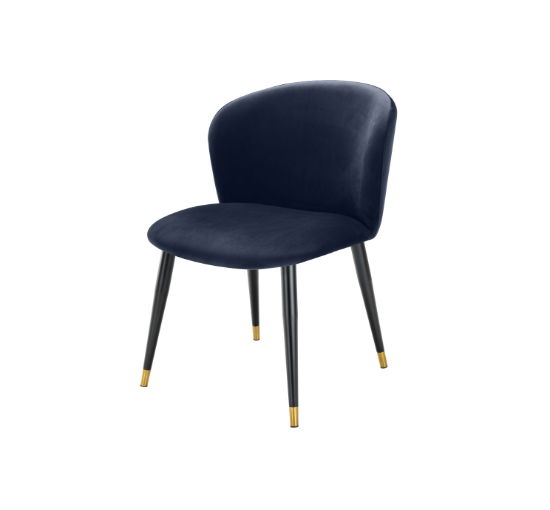 Ge din matsal ett lyft och skapa en Mid Century-känsla med Volante matstol i en vacker och elegant midnattsblå färg. Denna matstol i glänsande sammet och svarta stolsben har en böjd rygg som ger dig en bekväm stol att sitta länge i. Volante matstol finns i flera olika färger i sammet.