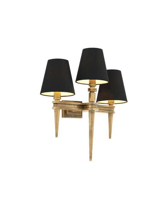 Öka den sofistikerade känslan i ditt hem med Waterloo Trippel vägglampa i mässing. Lampan har tre svarta lampskärmar på ispikformade lamphållare som är inspirerade av antika vägglampetter. Med en vintage mässingsfinish ger den en touch av tradition till din inredning.