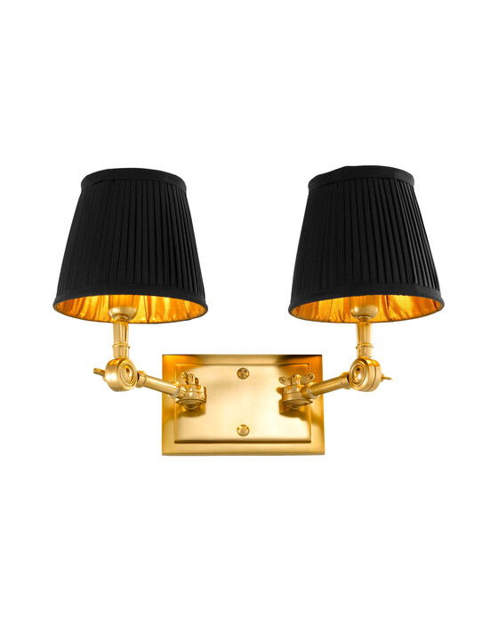 Skapa en stämningsfull atmosfär med Wentworth vägglampa från Eichholtz. Välj vägglampa med omsorg och ge rummet det lilla extra med en eller flera vägglampor och skapa en skön harmonisk balans mellan ljus och mörker. Vägglampan har en gedigen stomme av mässing med en elegant plätering i guldfärg vilket ger lampan en exklusiv look. Lampskärmen är tillverkad av polyester och inkluderas vid köpet. Vägglampan är avsedd för fast installation och måste kopplas direkt till en elsladd som dras från väggen. Mått på lampskärmen Ø: 15 x Ø: 11 x H: 13 cm.