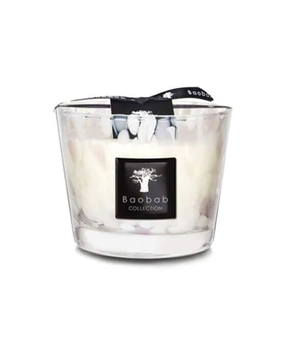 Upplev en underbar doft av orkidéer, freesia och mysk med detta eleganta doftljus från Baobab. Inspirerat av den vita pärlan, symbolen för renhet och kärlek, sprider White Pearls en harmonisk känsla i rummet.