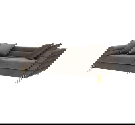 York soffa i borstad mässing och klädsel i grå sammet kommer garanterat att bli ett stiligt tillskott till ditt hem. Den eleganta designen och bekväma stoppningen gör den till en perfekt plats för avkoppling.