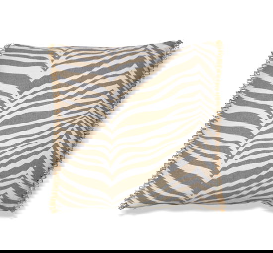 Den stilfulla kudden Zebra är en mönstrad kudde i vit och beige/brun med dekorativa fransar i jute. Tillverkad av högkvalitativ bomull och öko tex-certifierad för att vara fri från giftiga ämnen. Rekommenderas för kemtvätt. Handsydd design från det svenska varumärket Classic Collection.