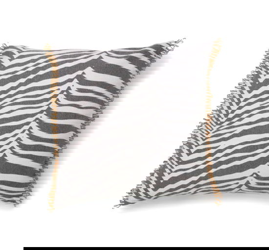 Den stilfulla Zebra kudden i vitt och grått med dekorativa jutefransar är ett elegant tillskott till ditt hem. Tillverkad av högkvalitativ bomull och öko tex-certifierad för att vara fri från giftiga ämnen. Rekommenderas kemtvätt för bästa skötsel.
