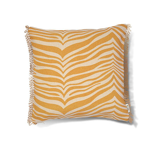 Denna stilfulla Zebra kudde i vit och gul är en perfekt dekorativ touch till ditt hem. Med dekorativa fransar i jute och högkvalitativ bomull är denna kudde inte bara vacker utan också hållbar. Den är öko tex-certifierad för att garantera att den är fri från giftiga ämnen. Kudden är handgjord av svenskt varumärke Classic Collection och varje kuddfodral är unikt i sig.