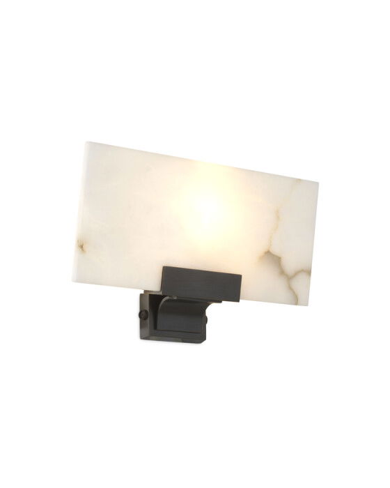 Zen vägglampa har ett elegant och modernt väggfäste i brons finish men en rektangulär alabastplatta som mjukar upp ljuset och skapar en varm och mysig atmosfär. Placera vägglampan i din hall, i sovrummet eller vardagsrummet för en touch av modern sofistikering. Vägglampan är avsedd för fast installation och måste kopplas direkt till en elsladd som dras från väggen. Kabeln på lampan sitter bakom väggplattan och kommer inte vara synlig efter att lampan fästs på väggen.