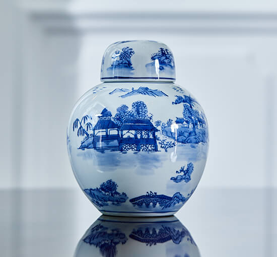Det handmålade Zina ingefärskrus i blått och vitt är en vacker dekorativ urna som passar perfekt som en elegant detalj på ett sidobord eller rumsbord. Med sitt tidlösa blåvita mönster och gedigna form blir detta ingefärskrus en vacker inredningsdetalj, både med och utan blommor i.